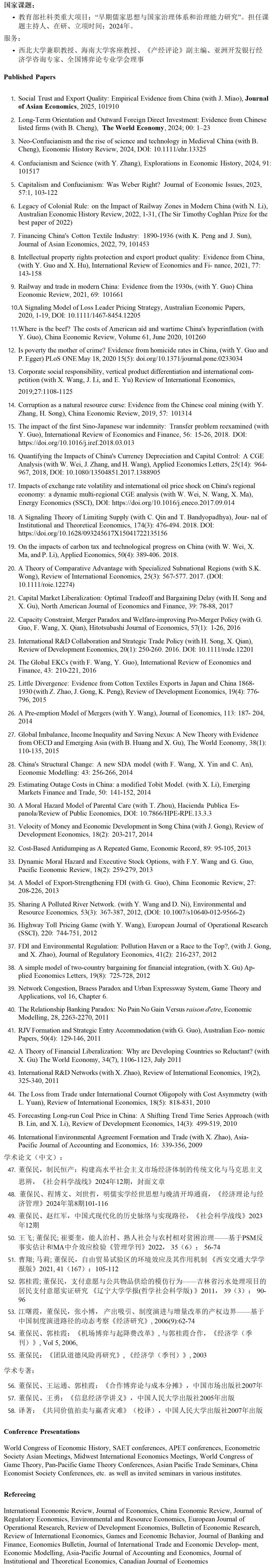 2013 to 2024, Professor, School of Economics, Henan University