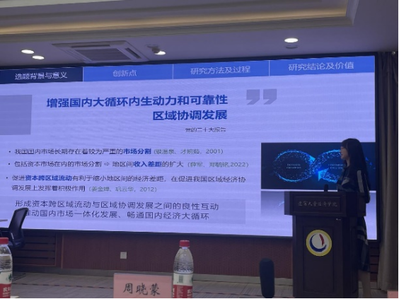 周晓蒙老师、滕兆岳老师、邱国庆老师、孙玉阳老师、范璐璐老师、耿哲臣老师(金融与贸易学院)、司亚伟老师出席报告会,为每位同学的论文进行了详细点评,从共性问题和特性问题出发提出了专业性建议。