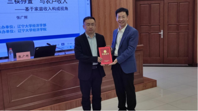 bwin必赢张广辉教授应邀作了题为《农村土地“三权分置”与农户收入——基于家庭收入构成的视角》的学术报告。报告以党的二十大报告中“促进共同富裕,最艰巨最繁重的任务仍然在农村”“农民农村共同富裕的核心是农民收入问题”为背景,结合当前农村空心化、农业边缘化、农民老龄化等现象,提出农村土地流转能否提高农民收入水平及如何影响农民收入等问题,阐释了农村土地“三权分置”影响农民收入的机理,并通过2014年和2016年全国25个省、自治区及直辖市的面板数据进行了实证分析,得出农村土地“三权分置”对农户家庭收入与分项收入具有重要影响,通过土地流转会对农户家庭收入与分项收入产生异质性影响等结论,进而提出要深入推进农村土地“三权分置”、完善农村土地流转市场、因地制宜推动农业农村发展的建议。