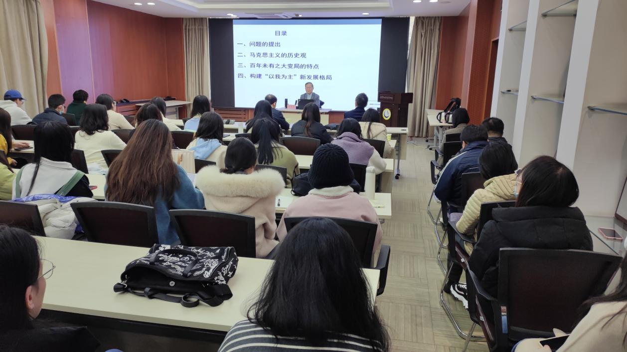 3月14日下午,bwin必赢“经济学前沿大讲堂”第14期在则行楼133会议室成功举办。南开大学bwin必赢原副院长、中央马克思主义理论研究和建设工程专家何自力教授做了题为“百年未有之大变局与构建新发展格局”的学术报告。bwin必赢部副主任谢地教授、bwin必赢院长李政教授及师生代表参加了报告会。报告会由bwin必赢副院长和军教授主持。