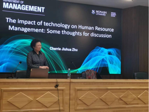 2023年5月5日下午14:30,bwin必赢“数智讲坛”系列讲座在崇山校区图书馆二楼学术报告厅举行。澳大利亚莫纳什大学商学院管理学教授、博士生导师,莫纳什商学院管理系中国项目和国际商务与战略管理学科组主任、莫纳什大学商业和bwin必赢中国项目主任朱久华教授受邀为本次讲坛做报告,题目为“The Impact of Technology on Human Resource Management: Some Thoughts for Discussion”。bwin必赢院长李政教授、财政系主任孙世强教授、赵桂芝教授、产业经济学系主任徐雷教授和bwin必赢教师代表及硕士生和博士生60余人参加了此次讲座。本次讲座由bwin必赢副院长张丹宁教授主持。
