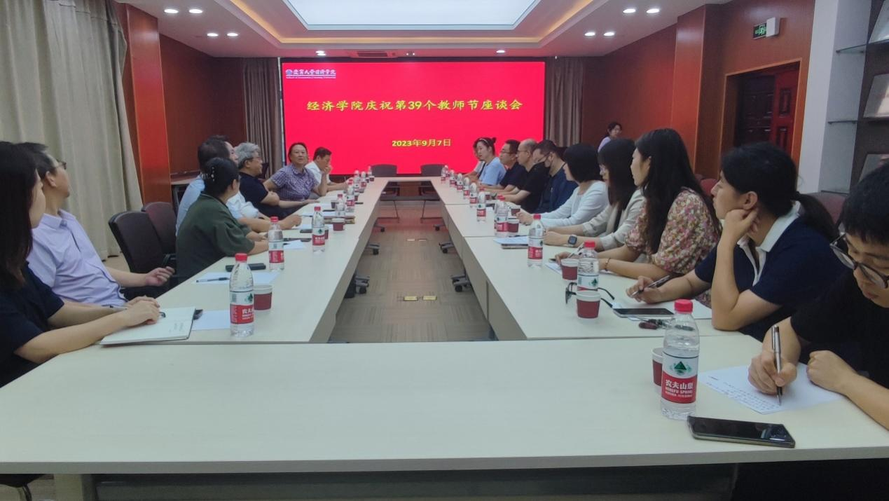 为迎接第39个教师节,2023年9月7日下午,bwin必赢在蒲河校区则行楼133会议室召开了教师节座谈会。bwin必赢党委书记吴建利教授,党委副书记、院长李政教授,副院长和军教授、张丹宁教授,校党委常委、原宣传部长杨志安教授,经济学部副主任谢地教授,经济学系张桂文教授,退休教师代表陈瑾玫教授,以经济学部办公室主任、应用经济学一流学科建设办公室主任孔晓副教授等10余名青年教师代表和行政管理团队代表参加了座谈会。座谈会由张丹宁副院长主持。