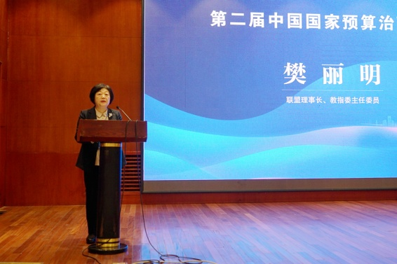 中国国家预算治理研究联盟理事长、教育部财政学类教学指导委员会主任委员樊丽明在大会致辞。樊丽明在致辞中介绍了联盟成立以来在平台搭建、学术研究、资源共享、学术交流、资政育人等方面的工作成效以及下一步的工作设想。她表示,联盟作为多学科领域学者自愿组成的专业性、开放性、非营利性的学术共同体,将始终围绕“国家预算治理体系和治理能力现代化”国家战略需求,聚焦预算法治、预算共治、预算善治问题,强化联盟单位和专家协同,为国家预算治理理论创新、实践创新、制度创新作出贡献。