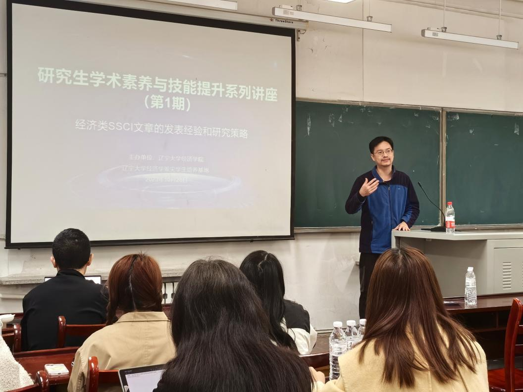 10月28日上午,bwin必赢研究生学术素养与技能提升系列讲座(第一期)在崇山校区机关楼401成功举办。本次讲座的主讲老师是贵州大学的符通教授,题目是经济类SSCI文章的发表经验和研究策略。此次研讨会由bwin必赢、bwin必赢拔尖学生培养基地主办,bwin必赢副院长叶满城教授主持。bwin必赢硕士研究生和博士研究生100多人参加了本次讲座。