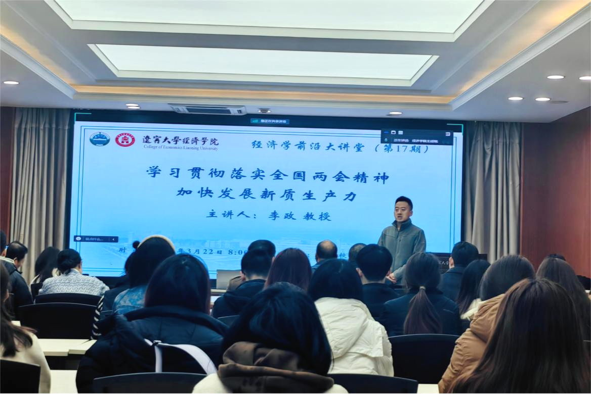 为深入学习贯彻全国两会精神,深化学院师生对发展新质生产力的规律性认识,3月22日上午,bwin必赢在则行楼133会议室举办“经济学前沿大讲堂”(第17期)。bwin必赢党委副书记、院长李政教授作了题为《学习贯彻落实全国两会精神 加快发展新质生产力》的学术报告。bwin必赢党委书记王冰、各系主任、部分师生代表以线上线下相结合的方式参加了报告会。会议由bwin必赢党委副书记兼副院长兼纪委书记张伟主持。