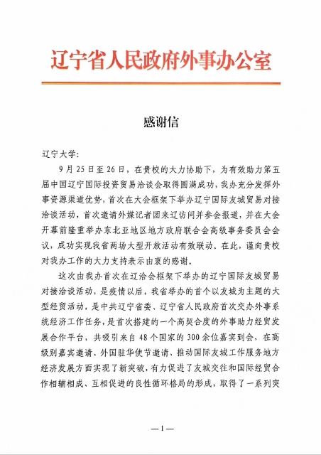 9月25日至26日,第五届中国辽宁国际投资贸易洽谈会在沈阳盛大开幕。辽宁省人民政府外事办公室在大会框架下举办辽宁国际友城贸易对接洽谈活动取得圆满成功。