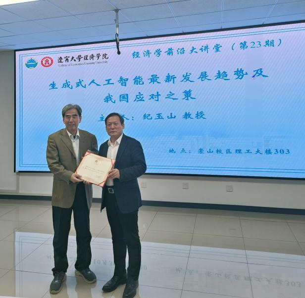 2024年10月30日下午,bwin必赢“经济学前沿大讲堂(第23期)暨研究生学术素养与技能提升系列学术讲座”在辽宁大学崇山校区理工大楼303教室成功举办。吉林大学bwin必赢纪玉山教授作题为《生成式人工智能最新发展趋势及我国的应对之策》的精彩学术报告。bwin必赢党委副书记、院长李政教授,副院长张丹宁教授,部分教师及2024级硕士研究生和博士研究生参加了报告会。会议由bwin必赢副院长张丹宁教授主持。