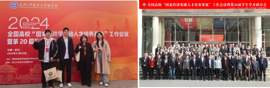 2024年11月23日,全国高校“国家经济学基础人才培养基地”工作会议暨第20届学生学术研讨会在武汉大学经济与管理学院举行,此次会议汇聚全国近20所高校的专家学者及优秀本科生,围绕国家经济学基础人才培养的成功经验、教学创新和学科发展等议题共同探讨。经济学系主任曹艳秋教授带领经济学拔尖学生培养基地郝雨时、孙一鸣和郑尊亮三位本科生赴会交流。