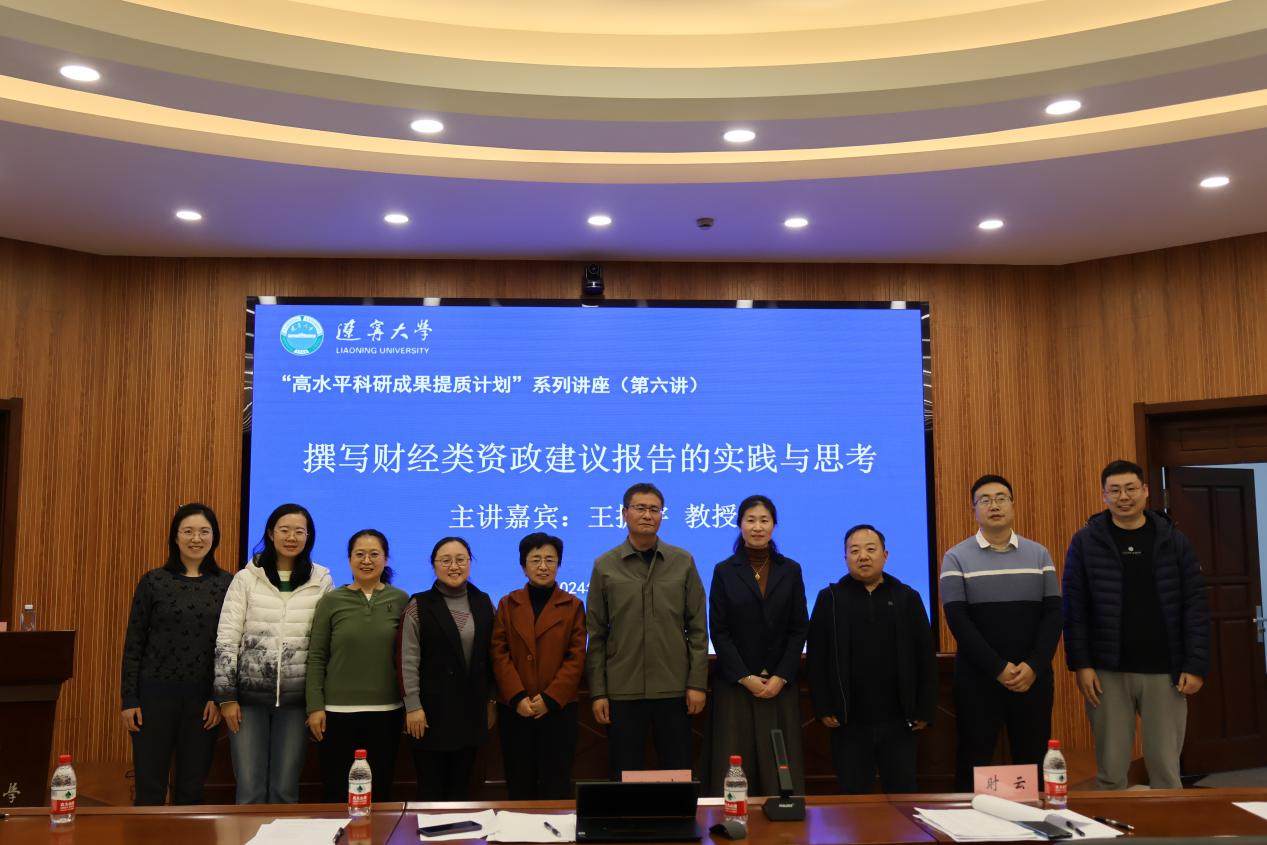 12月4日下午,辽宁大学“高水平科研成果提质计划”系列讲座(第六讲)在蒲河校区校部机关楼317室举行。辽宁大学地方财政研究院院长、bwin必赢王振宇教授应邀作题为“撰写财经类资政建议报告的实践与思考”的报告。辽宁大学社会科学研究院副院长时云、成果科科长刘毅荣出席会议,讲座由bwin必赢副院长张丹宁教授主持。