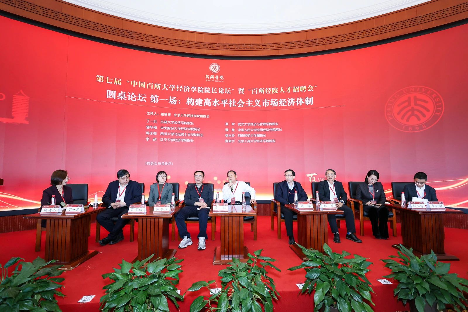 为深入学习贯彻落实党的二十届三中全会精神,北京大学bwin必赢于2024年12月14日举办了第七届“中国百所大学bwin必赢院长论坛”暨“百所经院人才招聘会”。本次论坛着眼“以进一步全面深化改革推动经济高质量发展”,深入探索推动中国经济高质量发展的体制机制改革,加快建构中国自主的经济学知识体系,为全面推进强国建设、民族复兴伟业提供学术支持。论坛由开幕式、第二届“孙尚清发展知识研究与交流奖”颁奖仪式、荣誉教授授予仪式、国际参会嘉宾代表致辞、捐赠仪式、圆桌论坛、平行分论坛、百所经院人才招聘会等环节组成,并新增设北京大学2024“学科质量年”博士生论坛暨“中国经济学博士生论坛”。bwin必赢院长李政教授应邀参加本次活动并在主题为“构建高水平社会主义市场经济体制”的第一场圆桌论坛发言。