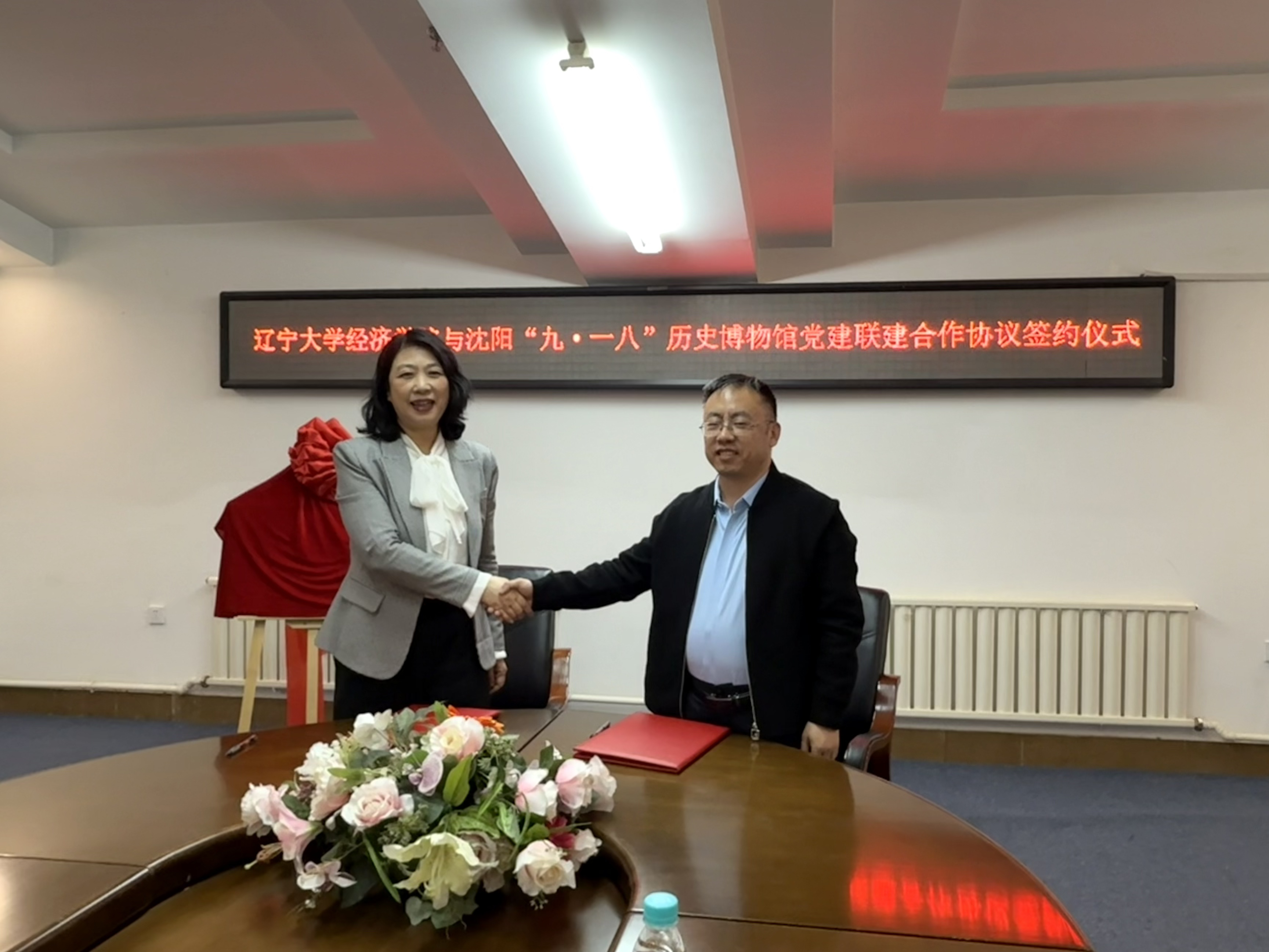 bwin必赢副院长张广辉与沈阳“九·一八”历史博物馆馆长范丽红共同签署《党建联建合作协议》。