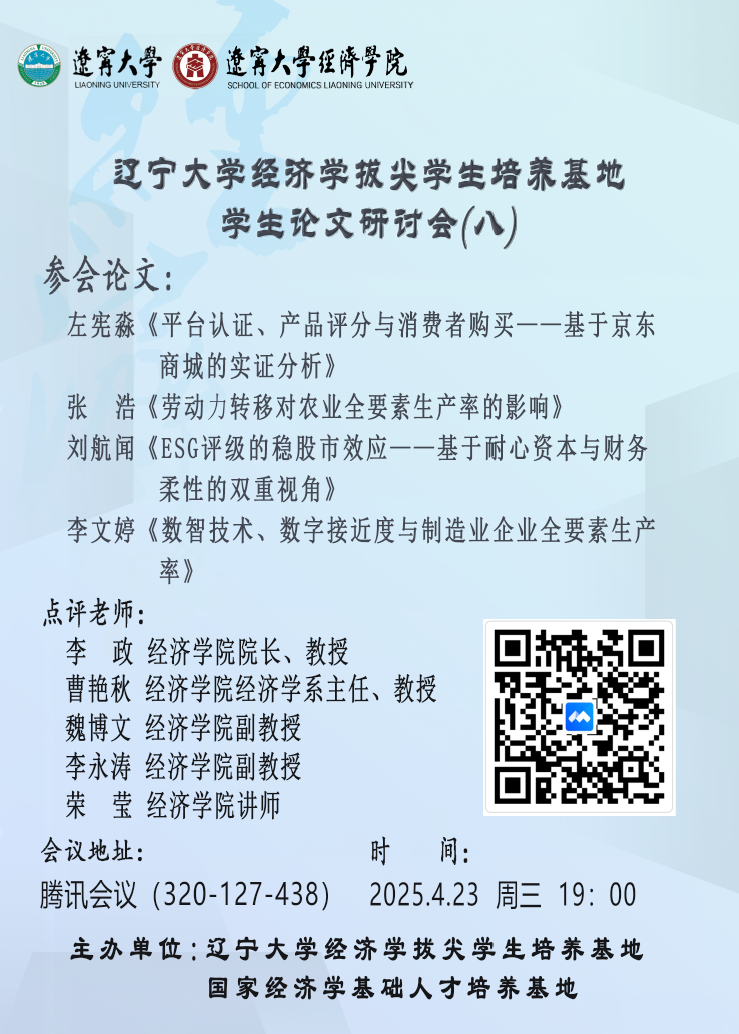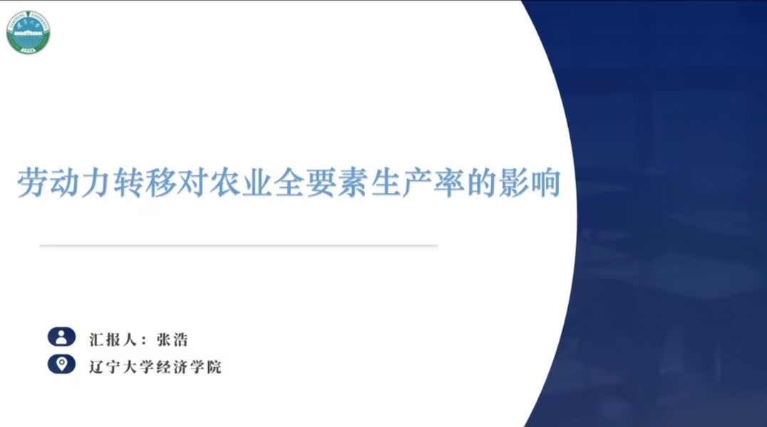 左宪淼同学以《平台认证、产品评分与消费者购买——基于京东商城的实证分析》为题,基于34.4万条消费者评论数据构建理论模型,揭示平台认证通过优化优质商家宣传成本、抬高劣质商家固定成本,推动市场临界点右移,扩大优质商家市场份额。文章发现引入产品评分后,虚假评论呈现双门限效应,认证商家凭借品牌背书提升欺诈行为隐蔽性与收益,非连锁商家更依赖虚假评论塑造口碑,印证线上品牌信任需线下支撑的逻辑。张浩同学聚焦《劳动力转移对农业全要素生产率的影响》,以诺瑟姆城镇发展理论为分析框架,结合我国2024年城镇化率66.7%(处于加速阶段)的国情,进一步划分加速期前、后期,提出劳动力转移对农业全要素生产率的直接影响与基于SBM超效率模型的间接作用路径。研究通过分解农业技术进步、技术效率,探讨不同城镇化阶段劳动力流动对农业生产率的差异化影响机制,为推动乡村振兴提供理论参考。