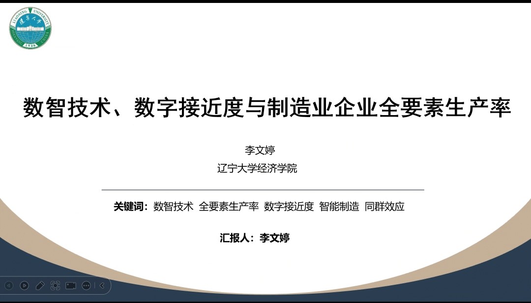 刘航闻在《ESG评级的稳股市效应——基于耐心资本与财务柔性的双重视角》一文中,聚焦ESG评级对股价稳定性的作用机制,提出“耐心资本吸引长期战略资本”“财务柔性提升抗风险能力”双重假设,基于A股上市公司数据构建计量模型,通过基准回归验证发现,ESG评级越高,企业股价波动水平越低,既证实微观层面的“稳股价效应”,也揭示宏观层面的“稳股市效应”,研究结论与当前“稳金融”政策目标高度契合。李文婷以《数智技术、数字接近度与制造业企业全要素生产率》为题,针对数字经济时代“索洛悖论”争议,创新性引入“数字接近度”概念,系统剖析数智技术对制造业全要素生产率的影响路径,重点探讨关键核心技术突破式创新、企业信息处理能力提升、技能型劳动力供给等作用机制,并基于同群效应理论检验数字接近度的调节效应,为破解“索洛悖论”、验证数字技术增长效应提供了新的经验证据。