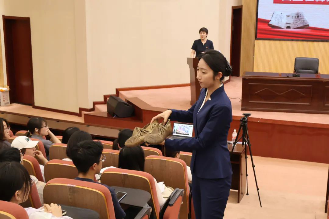 沈阳“九·一八”历史博物馆社会教育部副主任孙迪以“回溯烽火征程 礼赞胜利荣光”为主题,展开四部分讲述。第一部分“勿忘历史——震惊中外的九一八事变”中,通过详实的史料和生动的讲述,让学生仿佛置身于那个风雨飘摇的年代,深刻感受到国家危亡之际的民族危机。第二部分“中流砥柱——吹响号角的东北抗日斗争”展现了东北人民在抗日战争中的英勇无畏和坚韧不拔。第三部分“光辉典范——前赴后继的革命英雄先烈”讲述了那些为了国家和民族的解放事业而英勇牺牲的革命先烈的故事,全国五好讲解员李雨繁和省级比赛优秀讲解员韩汶樾分别以《民族英雄伟大父亲——杨靖宇》和《忠诚战士伟大母亲——赵一曼》为主题进行讲述。第四部分“正义审判——宽仁博大的民族大义之举”则展现了正义必将战胜邪恶的真理以及中国人民以德报怨的宽厚仁义,让学生深刻认识到中华民族的伟大精神和博大胸怀。
