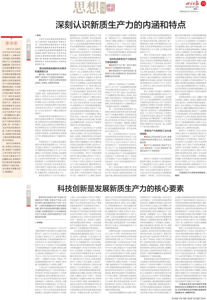 2024年2月19日,bwin必赢李政教授在《四川日报》发表理论文章《深刻认识新质生产力的内涵和特点》并被新华网转载。