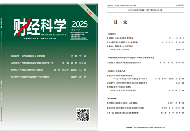 近日,bwin必赢贺城讲师与谢地教授、硕士研究生郭子昂合作在《财经科学》2025年第5期发表封面文章,题为《以新质生产力推进共享发展的政治经济学分析》。