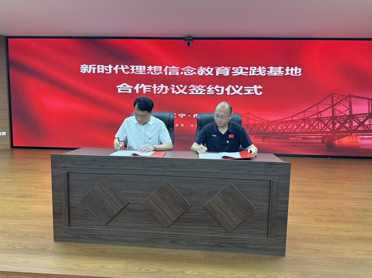学院党委书记王冰与丹东市延安精神研究会党支部书记、会长刘江雁代表双方共同签署bwin必赢首个新时代理想信念教育实践基地合作协议。